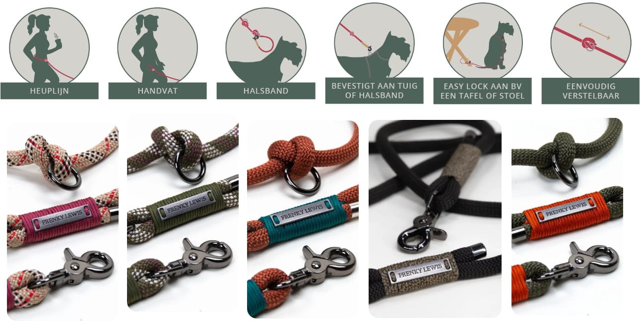 Frenky Lewis combineert hoogwaardige kwaliteit met een urban en stijlvolle uitstraling in elke hondenlijn. Gemaakt van premium, waterafstotend touw en met de hand vervaardigd, bieden deze lijnen ultiem comfort en een modieuze look, inclusief een handige handsfree optie voor actieve wandelingen.